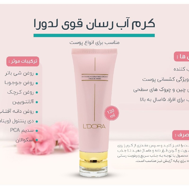 کرم آبرسان قوی لدورا، با فرمولاسیونی پیشرفته و عملکردی چندگانه، رطوبت را به عمق پوست میرساند، خاصیت ارتجاعی را افزایش میدهد و پوستی نرم و لطیف را برای شما به ارمغان میآورد.