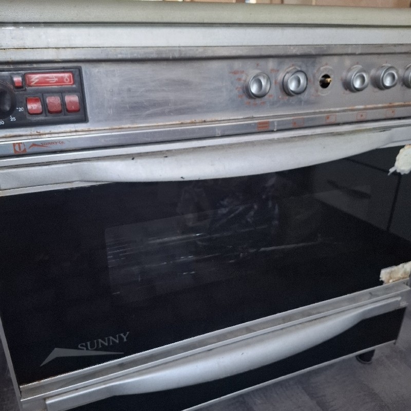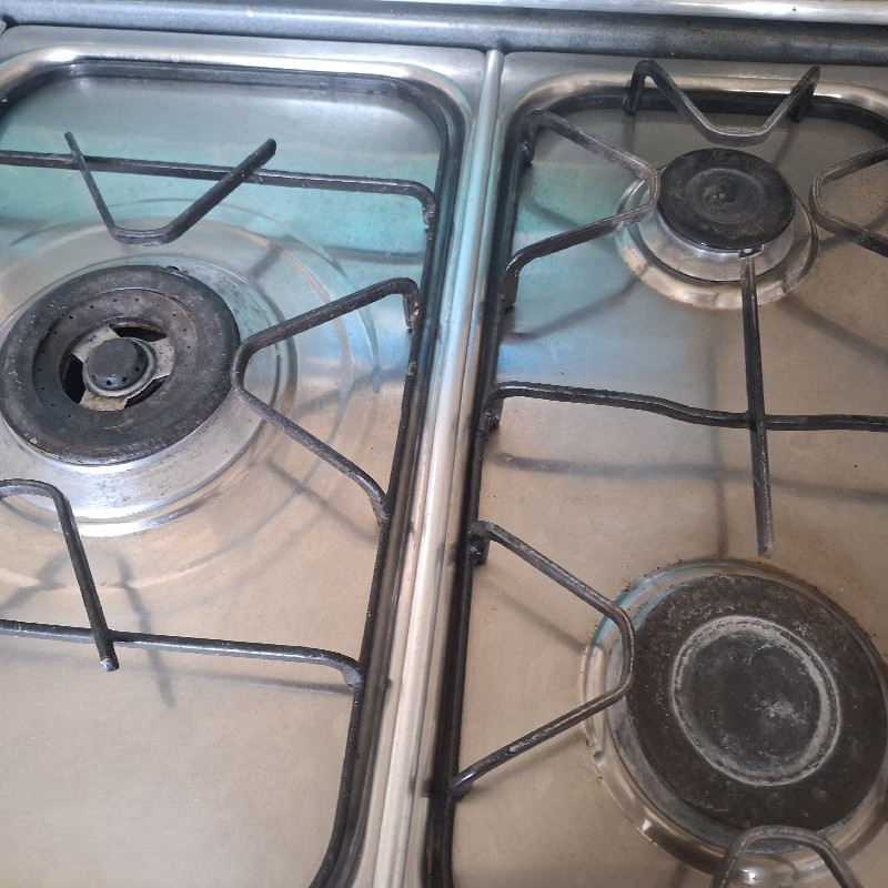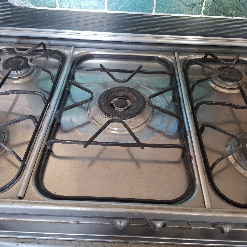 اجاق گاز پنج شعله فردار رنگ نقره ایی شعله وسط احتیاج به سرویس داره