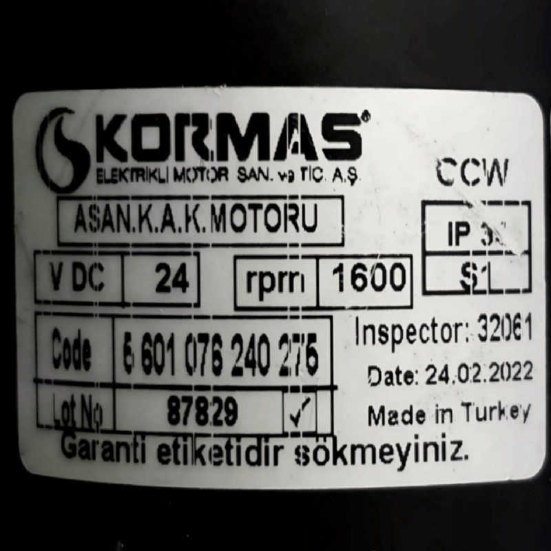 # الکتروموتور DC صنعتی کورماس ترکیه 190 وات 24 ولت 1600 دور