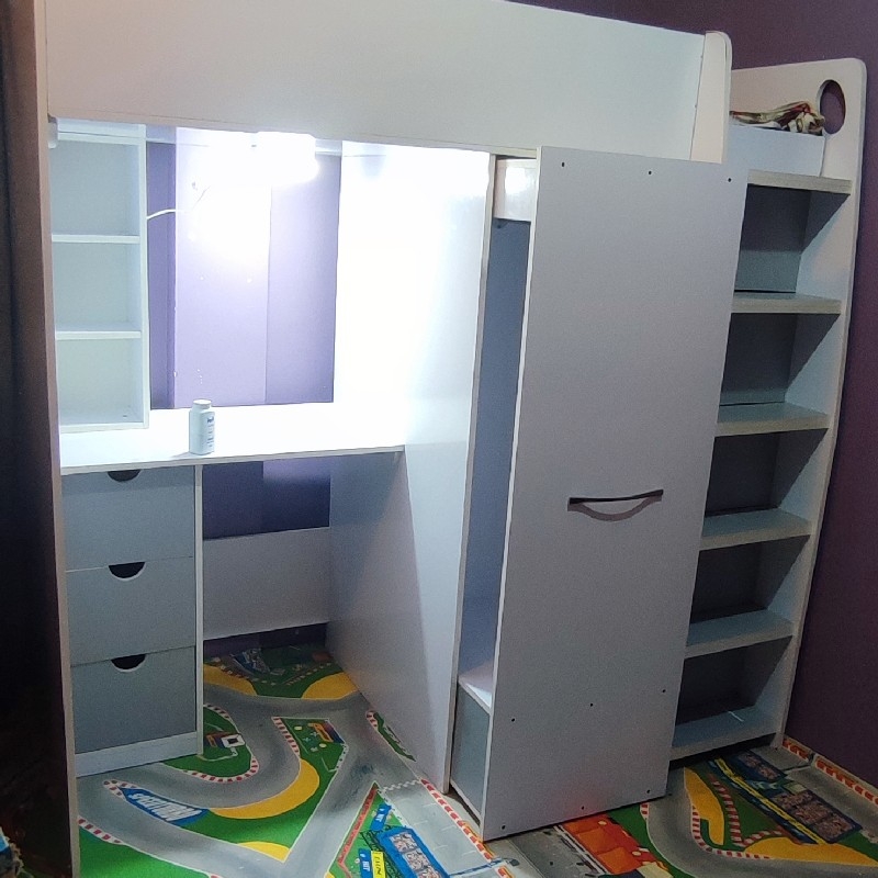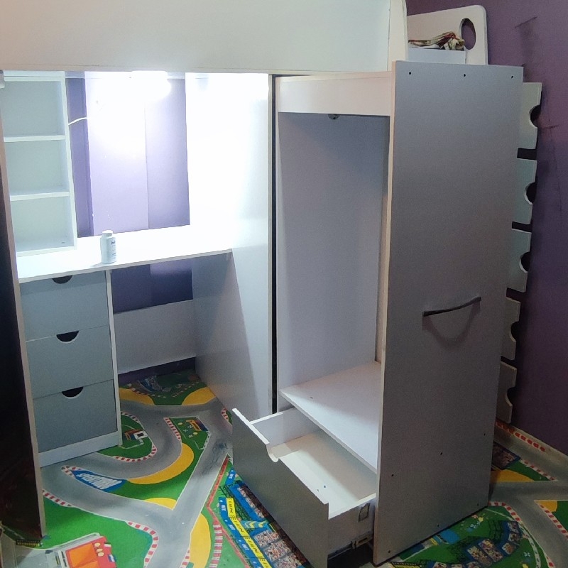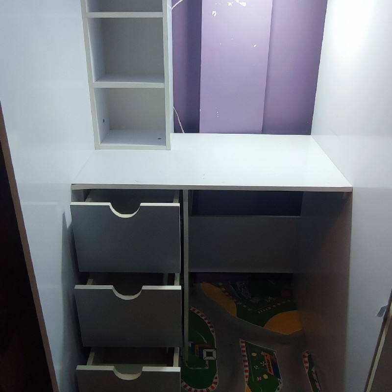 زیرش میز تحریر و کتابخونه داره با سه تا کشو