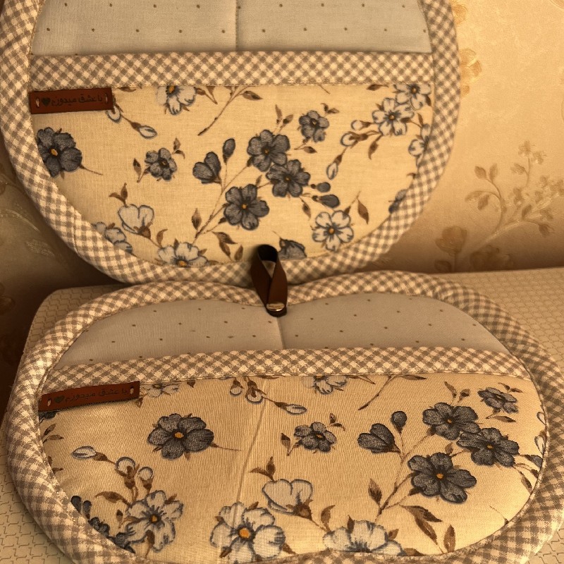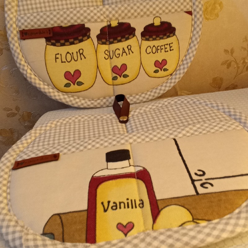 دوخت تخصصی سرویس آشپزخانه شامل دستگیره قلب و پروانه وسیب…وپیشبندونمگیرظروف وحوله آشپزخانه ودستکش فر سنجدی و معمولی وکاورقابلمه سفره شووسفره پاک کن وزیرقابلمه گل وزیرقوری قلب وکیف نان و کیسه سبزی و میوه…