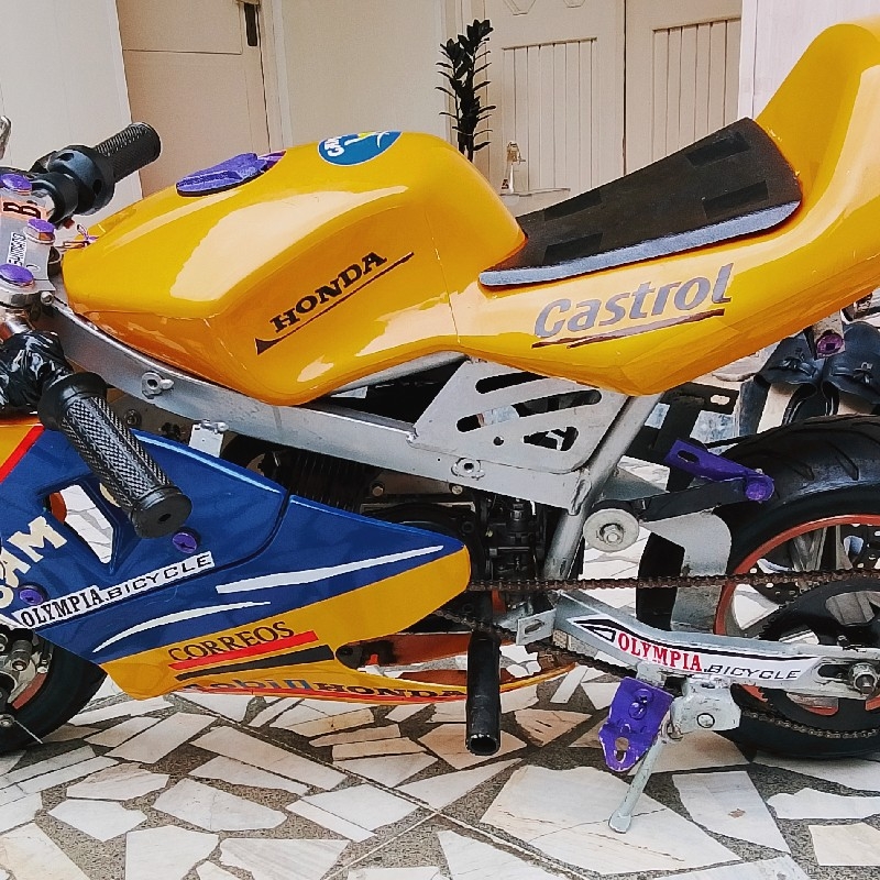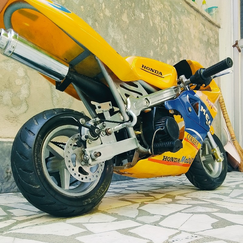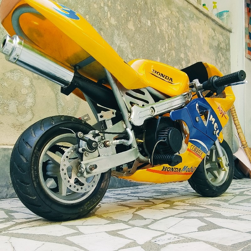 سالم.موتوربنزینی ۵۰ سی سی می‌باشد. کاملا سالم روشن. از تصاویر مشخصه. از۴سال تا۱۵سال میتونن سوار شن. تا۸۰ کیلووزنوتحمل می‌کنه. سرعتم۶۰تامیره. ۲لیتربنزین میخوره. ترمز جلو عقب دیسکی. لاستیک‌ها تیوپلس.تخفیف