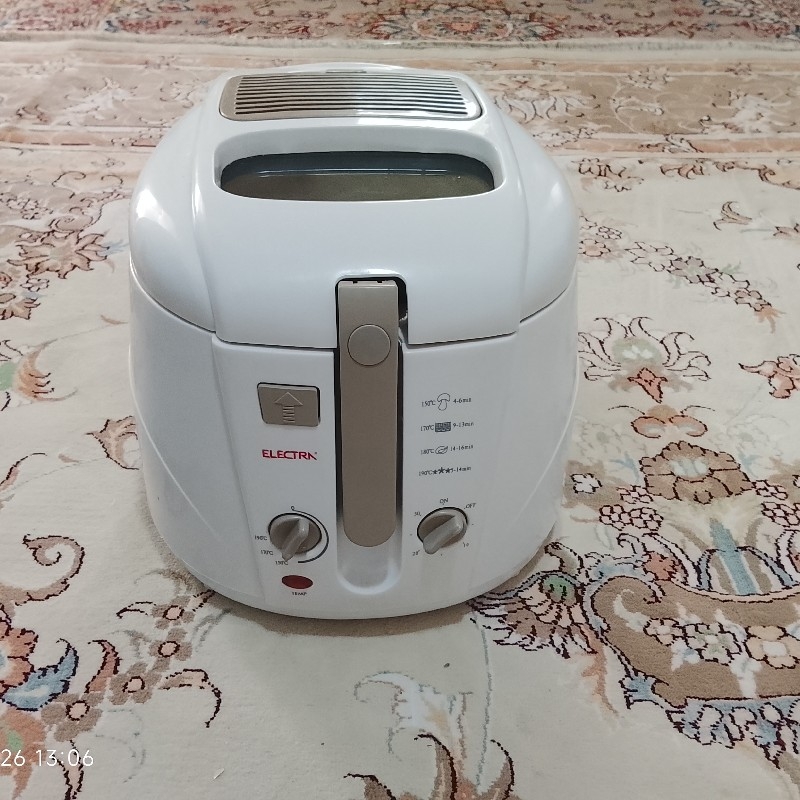 سلام سرخ کن الکترا 4لیتری رنگ سفید سالم هست دوبار کار کرده بدون خط و خش دارای توری برای سرخ کردنی