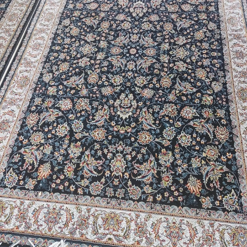 فرش دستباف گونه سرمه ای۷۰۰شانه گل افشان کاشان