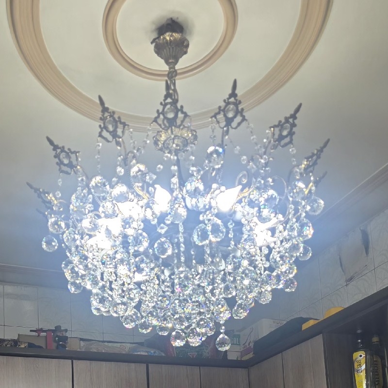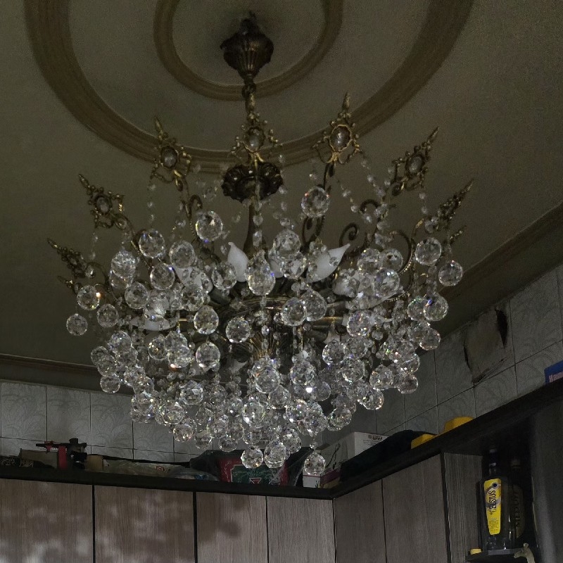 لوستر الماس کار شده برنجی ۱۶ شاخه در حد نو ۱۶ عدد لامپ میخورد