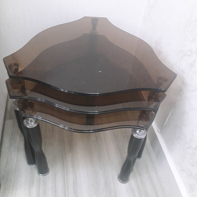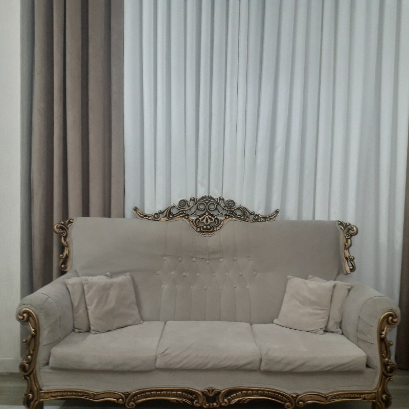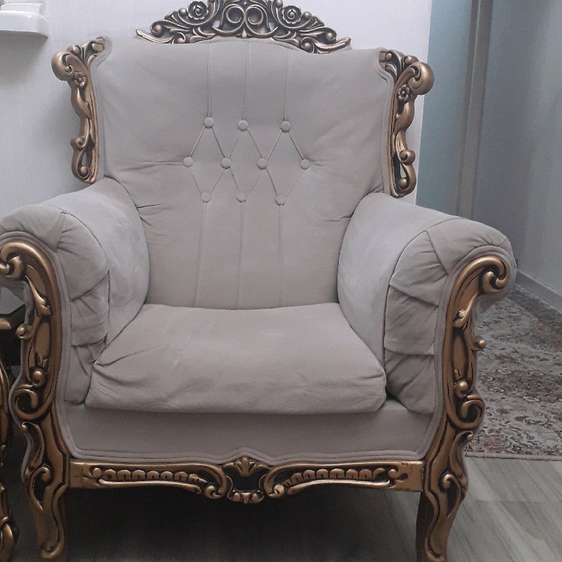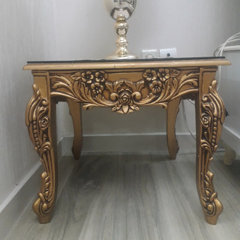 مبلمان ۷ نفره ۳ + ۲ + ۱ + ۱ به همراه دو عدد میزعسلی چوبی و سه عدد میزعسلی شیشه ای