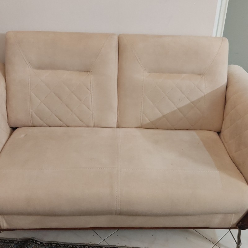 یکم لبه های مبل خردگی داره نشیمن گاه کاملا سالم و در حد نو میباشد به اندازه یک بنده انگشت یکم زدگی روی مبل سه نفره هست