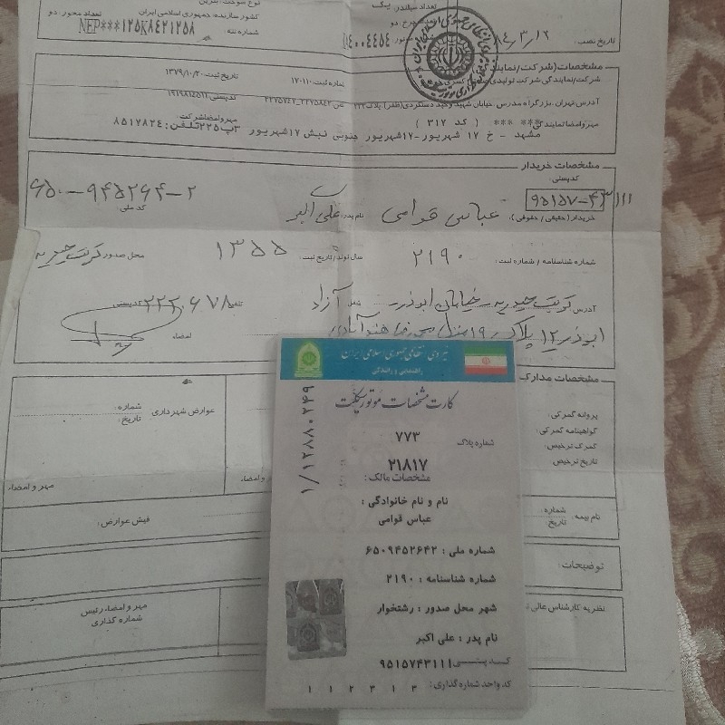 پلاک ملی عکس مدارک تو آگهی هست لاستیک عقب نو لامپ باتری راهنما خطر اوکی فقط یک دست رینگ میخاد مشتری واقعی زنگ بزنه آدرس روستا مرغزار